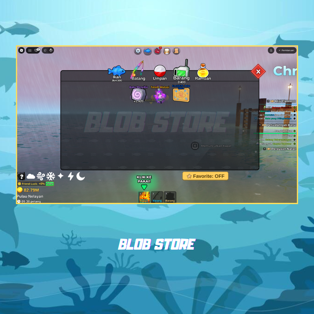 Akun Fish It Element Rod + Singular Bait + 80m Coins