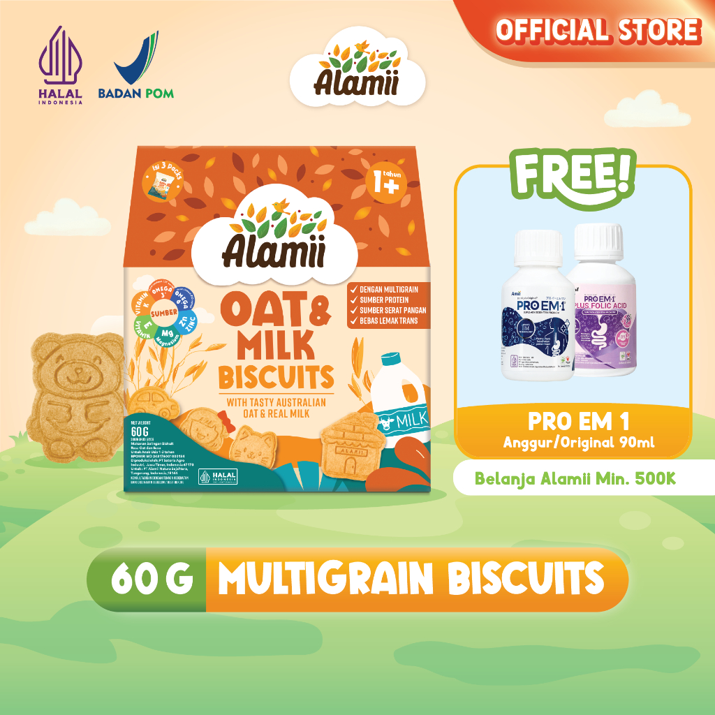 Alamii Multigrain Biscuits - Oat & Milk 60g (3 packs x 20g) / Biskuit Multigrain Gandum