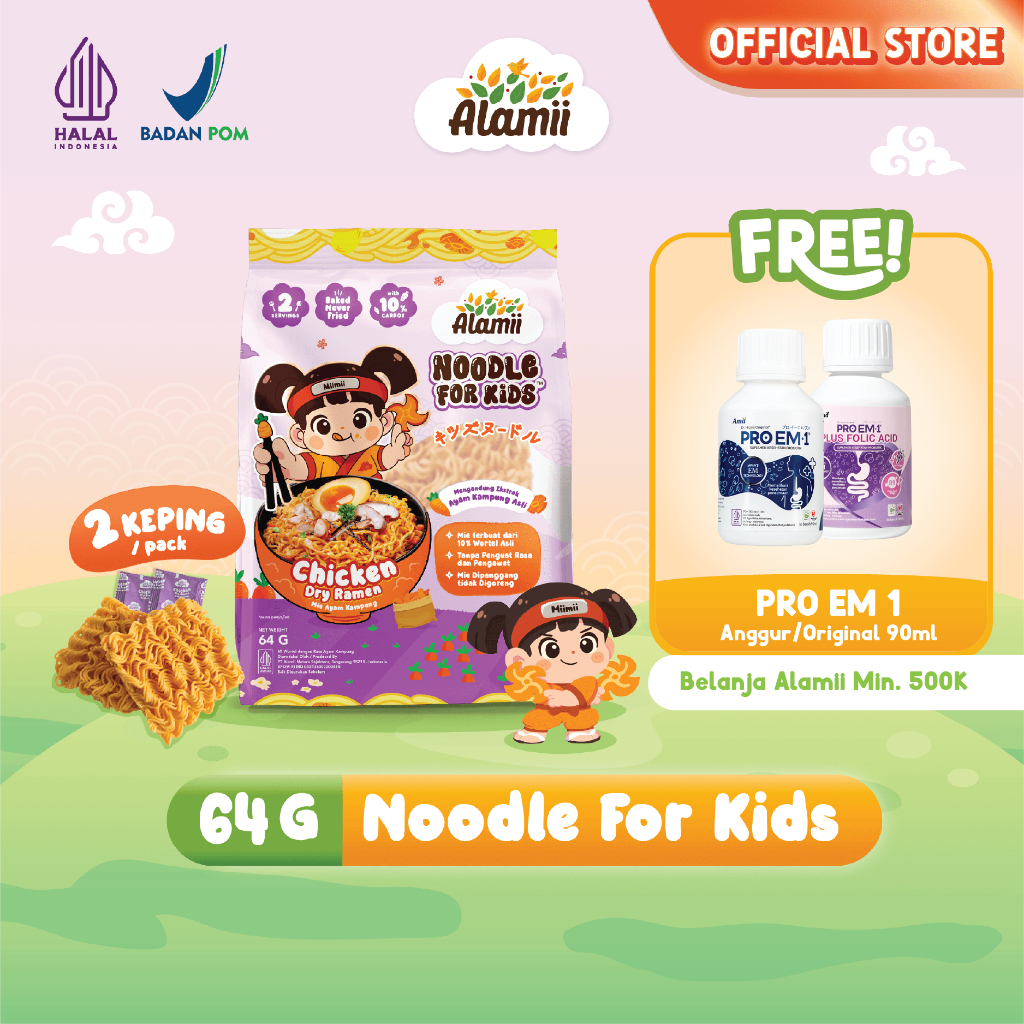 Alamii Noodle For Kids - Miso Soup Ramen 63g - Chicken Dry Ramen 64g / Mie MPASI Bayi Anak