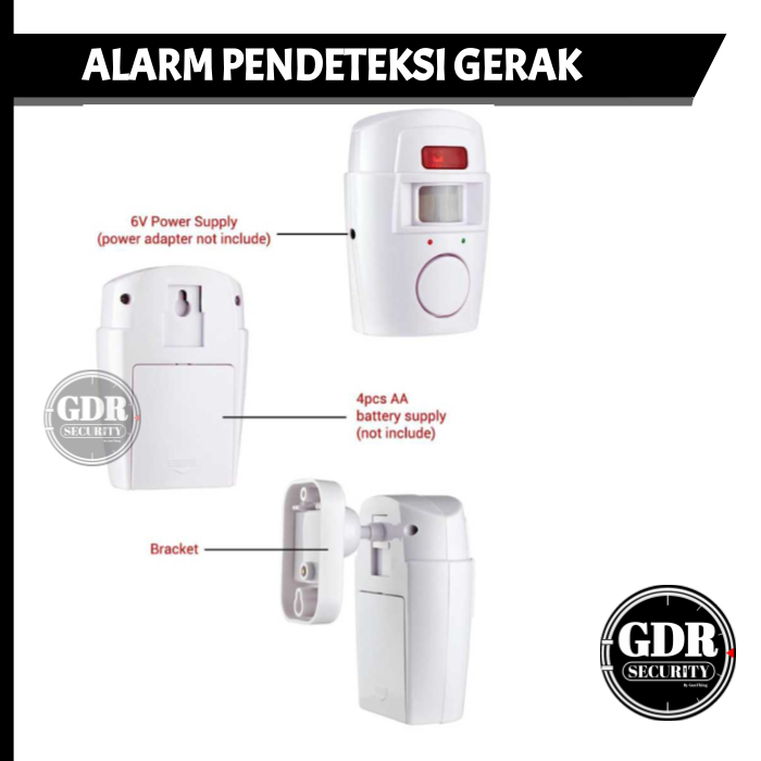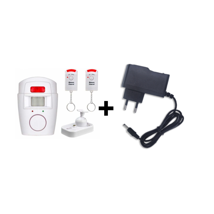 Alarm Anti Maling Infrared PIR Sensor Gerak (bisa +Baterai / +Adaptor), 2 Remote - Putih, Mudah Dipasang, Cakupan Luas TAFFHOME