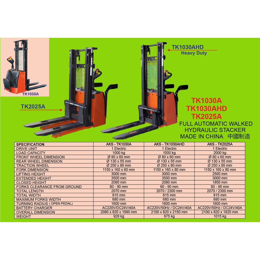 Alat Angkat Barang Automatic Hydraulic Stacker Lift 1 ton 3 m Heavy Duty - AKS - TK1030AHD - AKS1963