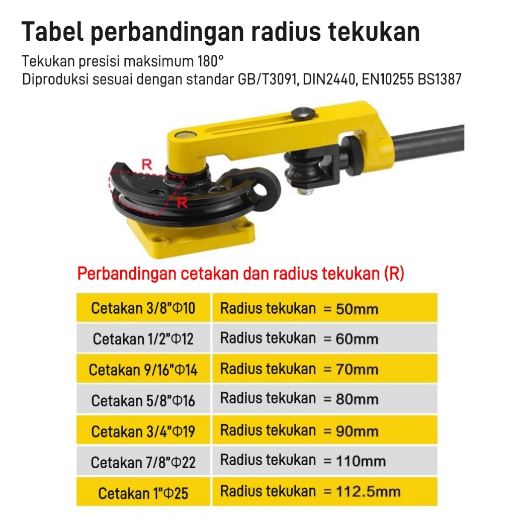 Alat Bending Pipa 10-25mm Besi/Galvanis/Stainless Steel Manual Bending Pipa Besi Alat Pembengkok Besi Beton Alat Bengkok Besi