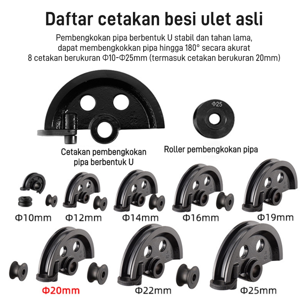 Alat Bending Pipa Manual Galvanis/Stainless Steel/Aluminum Pipe Bending Tool Alat Bengkok Besi 10-25mm Pembengkok Besi Beton