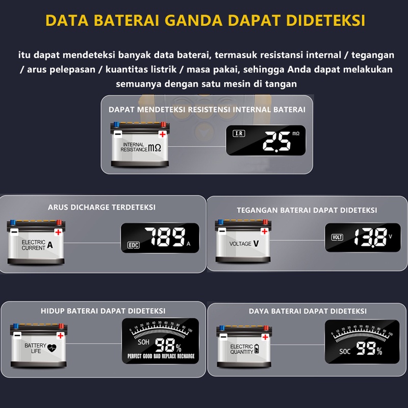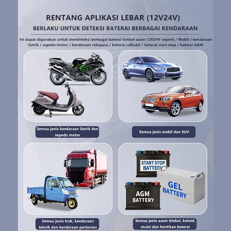 Alat Cas Aki Motor 24V/12V Alat Test Aki Alat Cek Kondisi Aki Mobil Motor Tester Accu Pengecek Baterai Digital Battery Tester Lancol Alat Tester Tegangan Aki Kendaraan Pro Motor Mobil Truk Cek Baterai Analyzer Capit Clamp
