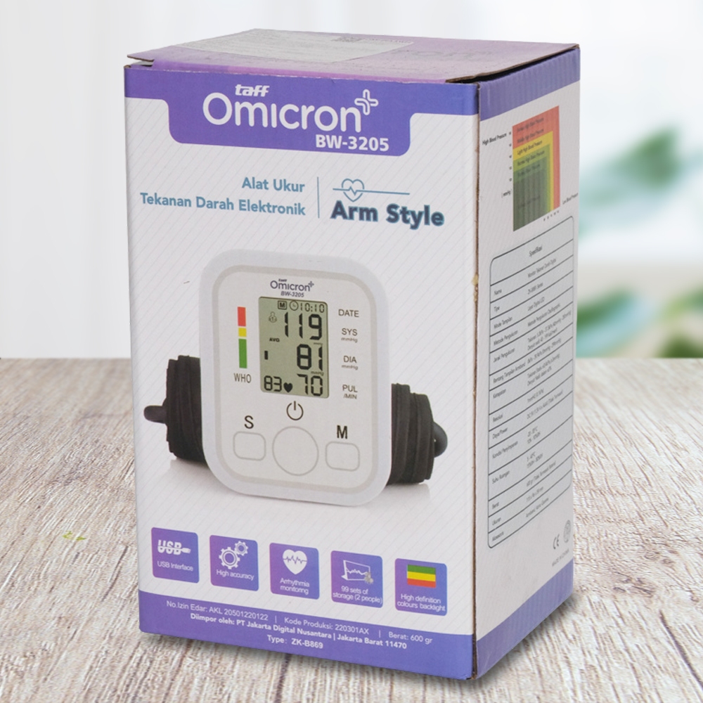 Alat Cek Tekanan Darah Otomatis Tensimeter Alat Pengukur Tensi Digital Taff Omicron Pengukur Tekanan Darah / Tensi Darah Tensimeter Digital / Blood Pressure Monitor / Electronic Sphygmomanometer