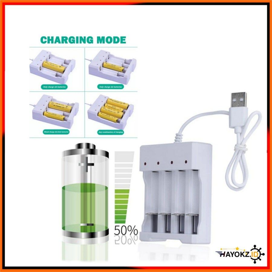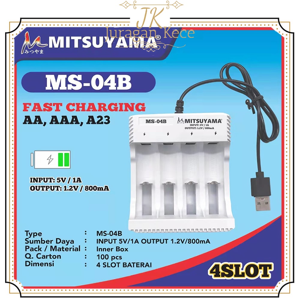 Alat Charger 4 Slot USB Baterai A2 / A3 / A23 Mitsuyama Battery Charger MS-04B Pengisi Daya Fast Charging Cas Rechargeable Batere Isi Ulang