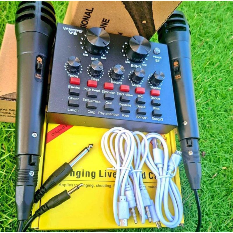 Alat Karaoke Portable || Bisa Duet Mixer Audio V8 Bluetooth USB Plus Mic x2