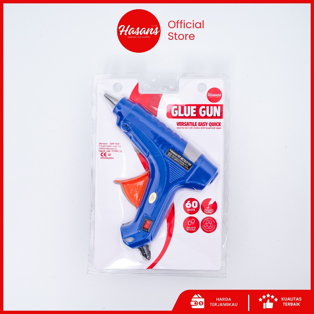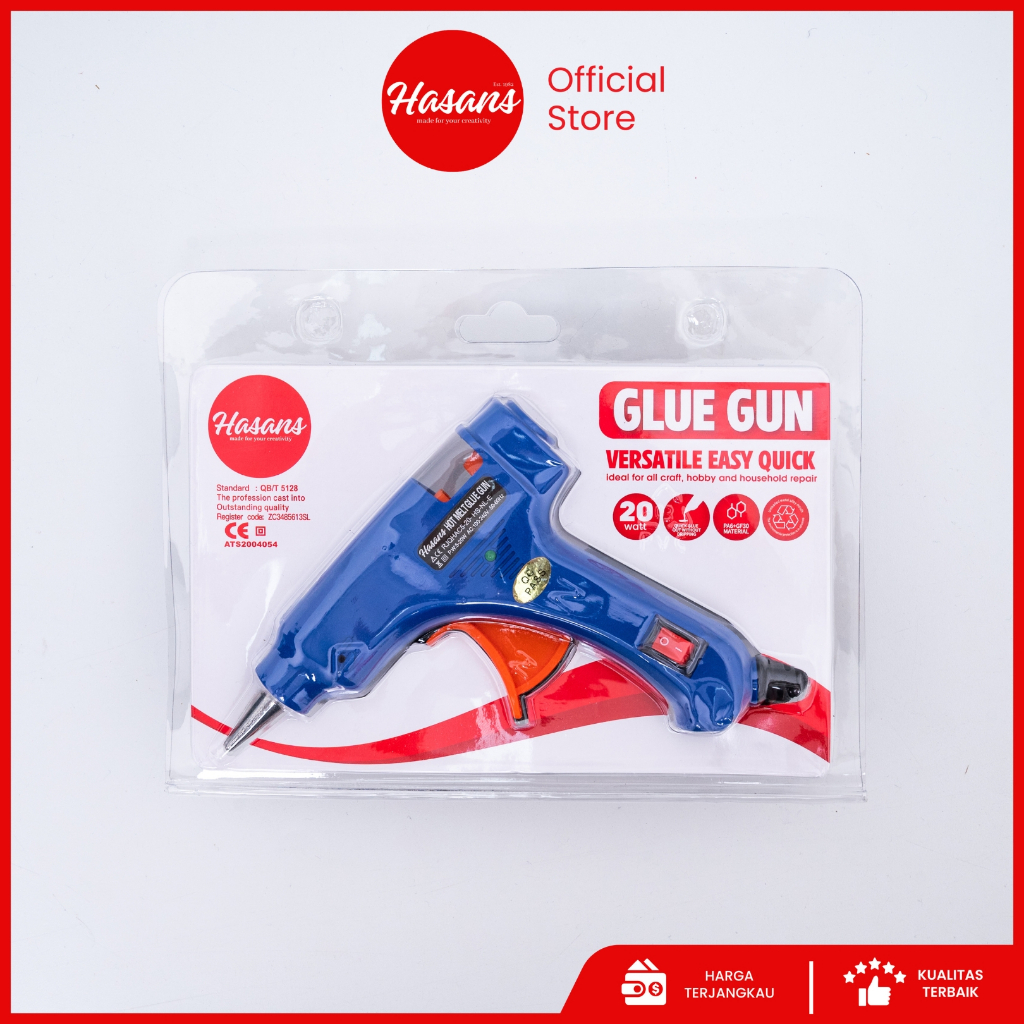 Hasans / Alat Lem Tembak / Hot Melt Glue Gan Mini ON-OFF 20 Watt Refill Glue Stick / Alat Lem Tembak / Pistol Lem Tembak / Lem Tembak Bahan Kerajinan Tangan / Glue Gun Swk 60w