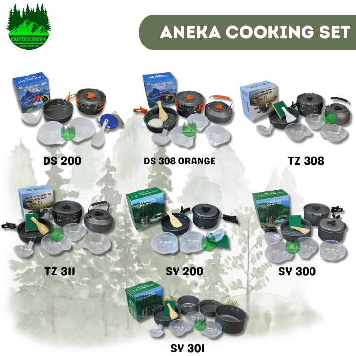 Aneka Cooking Set Camping Alat Masak Set Kemping Outdoor Nesting Hiking Portable Cookware Traveling