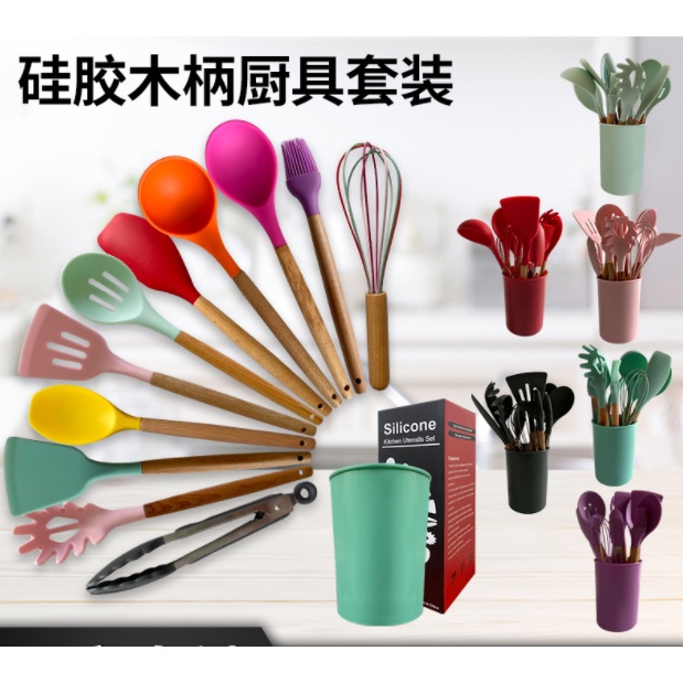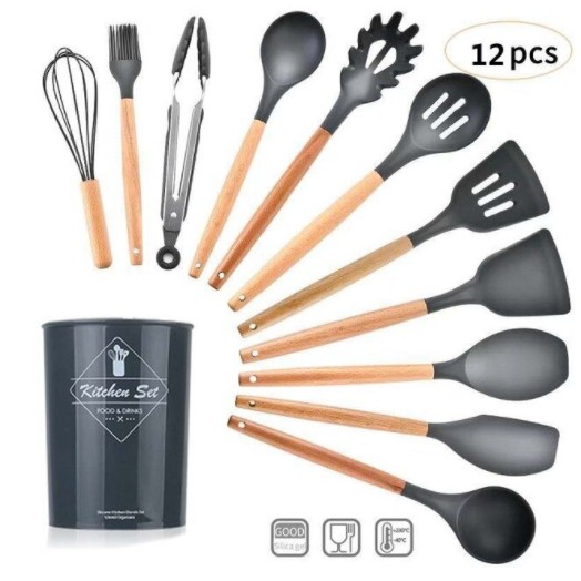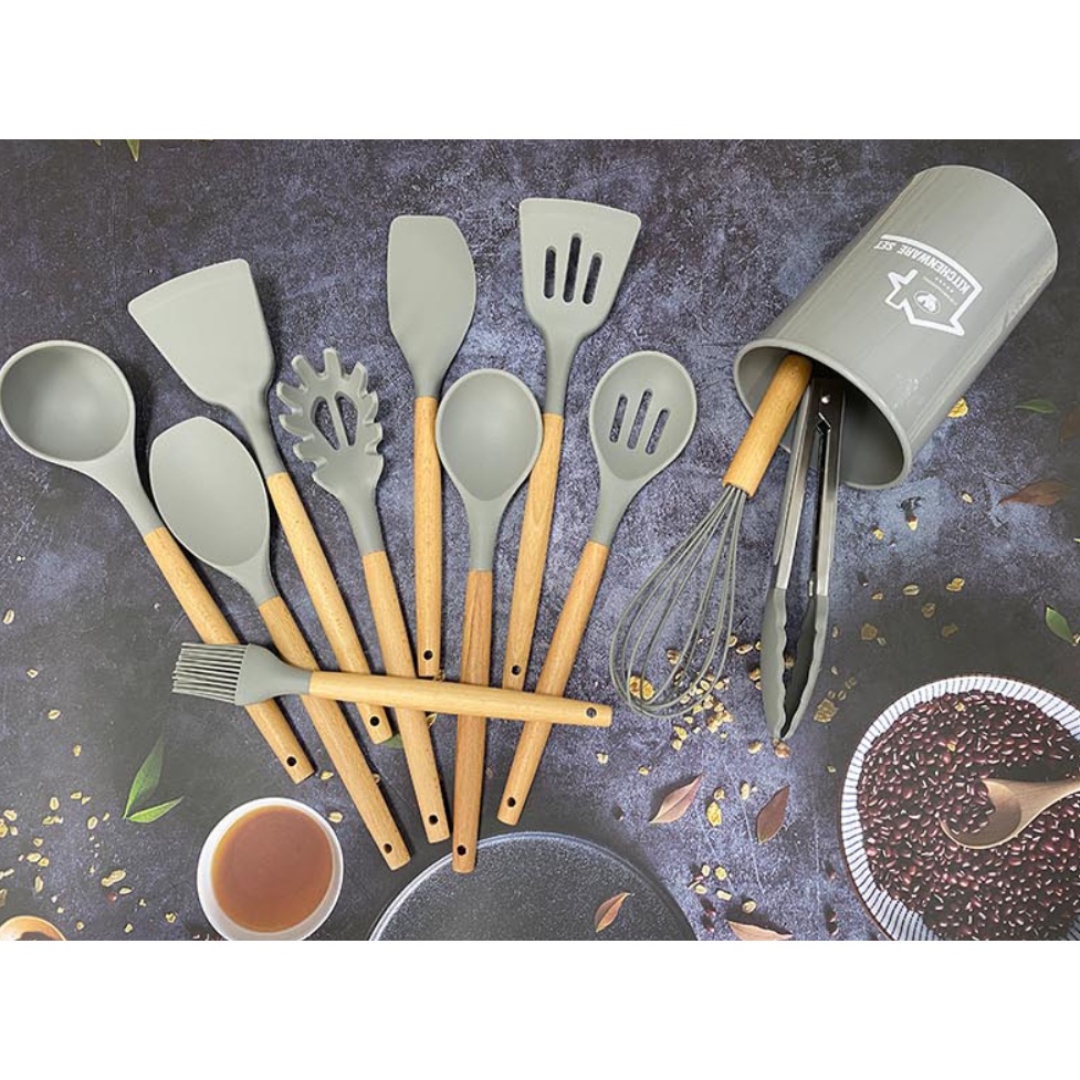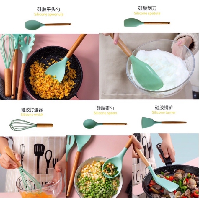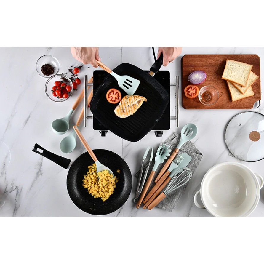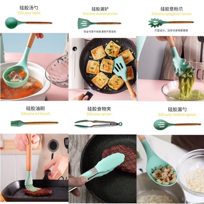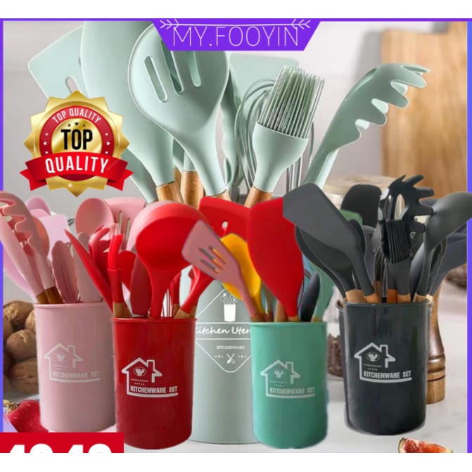 Alat Masak Set / Peralatan Masak 12 in 1 SET Silicone Kitchen Set Utensil Spatula Cooking BPA-Free