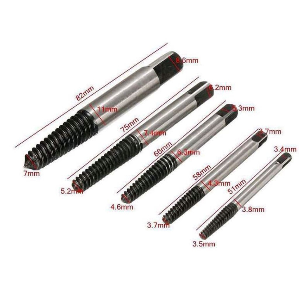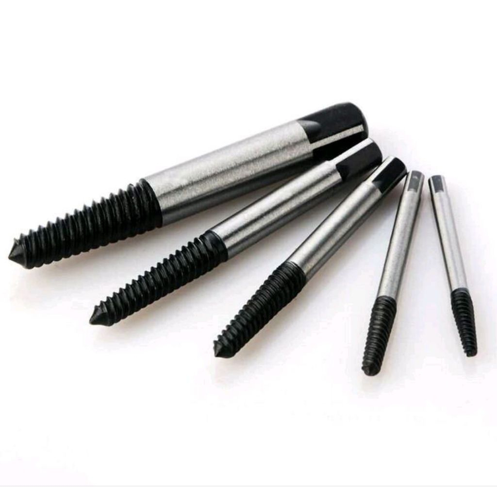 Alat Melepas Baut Rusak Screw Pembuka Mata Bor Screw Obeng Set 5 in 1 Extractor Buka Baut Patah