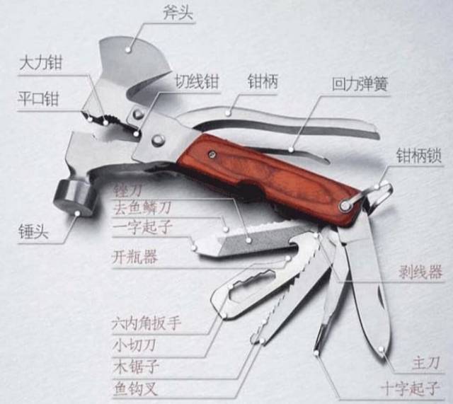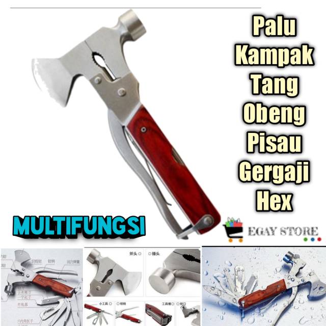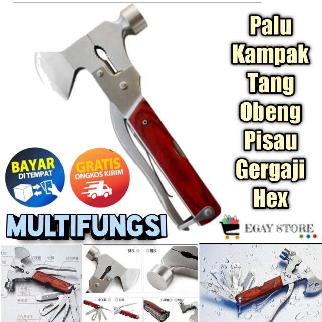 Alat Multifungsi Palu Kampak Tang Obeng Pisau Gergaji Hex Pembuka Botol Kapak Perkakas EDC Serbaguna