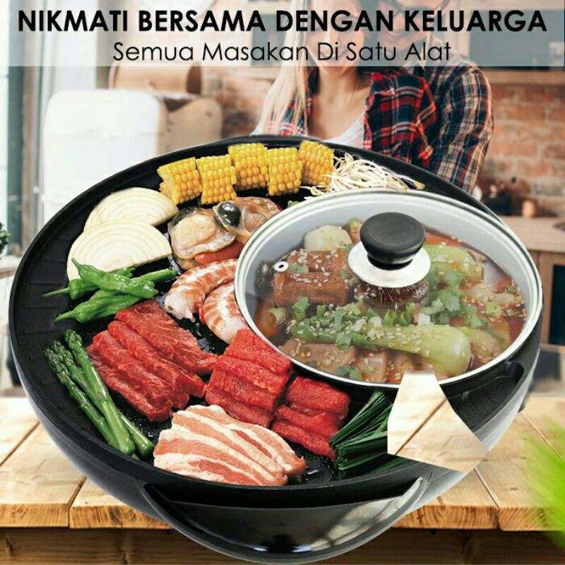 Alat Pangangan Shabu Gill Hot Pot Elektrik 2 In 1 Barbeque Portable