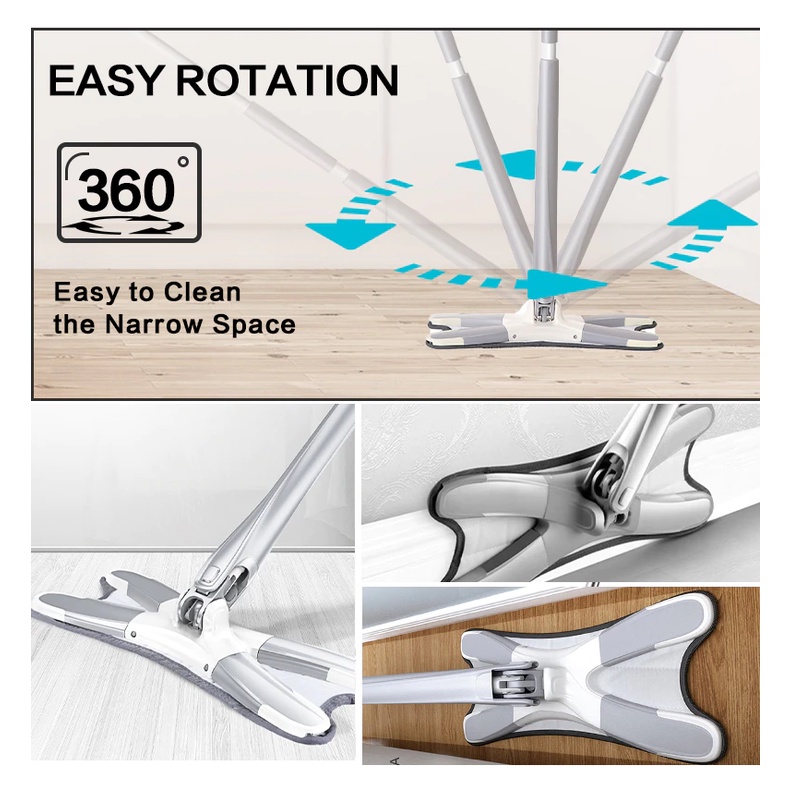 Alat Pel Pengepel Lantai Super Mop Peras Air Otomatis X Shape Ukuran 37 x 15 x130 Cm