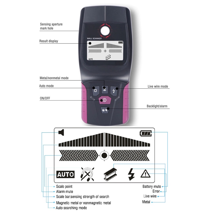 Alat Pemindai Dinding Deteksi Tiang Besi-Kayu-Kabel-Pipa Air - Promo