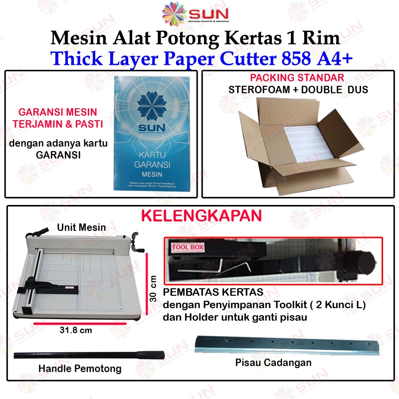 Alat Pemotong Kertas 1 rim A4 - Mesin Thick Layer Paper Cutter A4 858 ( Alat Potong Kertas / Paper Cutter hvs, Sticker, Art Paper, Undangan, Buku, Brosur Uk A6, A5, A4 )