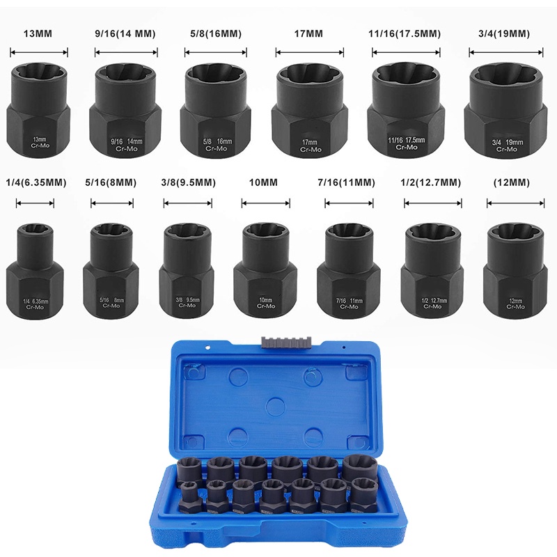 Alat Pencabut Baut Mur Rusak / Damaged Srew Bolt Nut Remover 13PCS