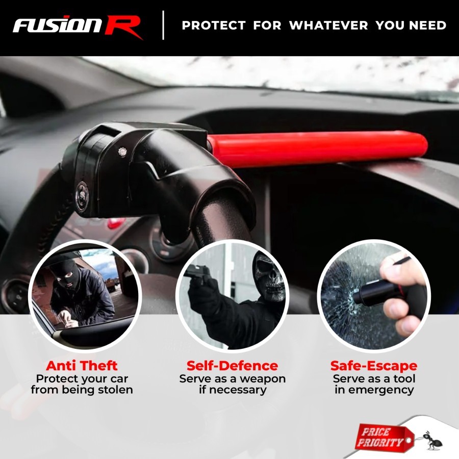 Alat Pengunci Stir Mobil T ARMORED BAR Anti Maling/ Kunci Pengaman Steer Mobil UNIVERSAL