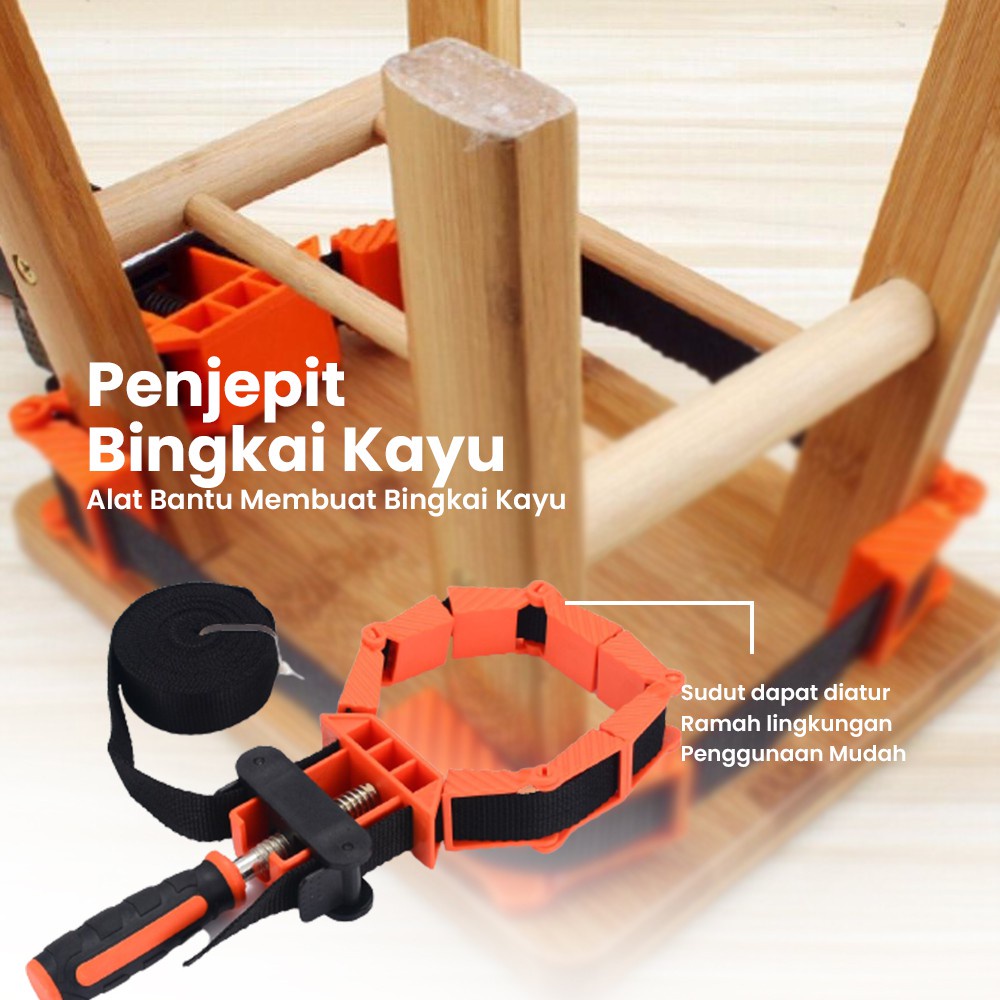 Alat Penjepit Bingkai Kayu Adjustable Corner Perkakas Jepit Tukang - Perlengkapan Tukang / Penjepit Bingkai Kayu / Corner Clamp Klam Klem Kayu Band 4 Jaw 4M / Menjepit Kayu, Kaca Dan Benda Lainnya / Alat Penjempit Kayu Kaca / Penjepit Suduk Kayu - Red