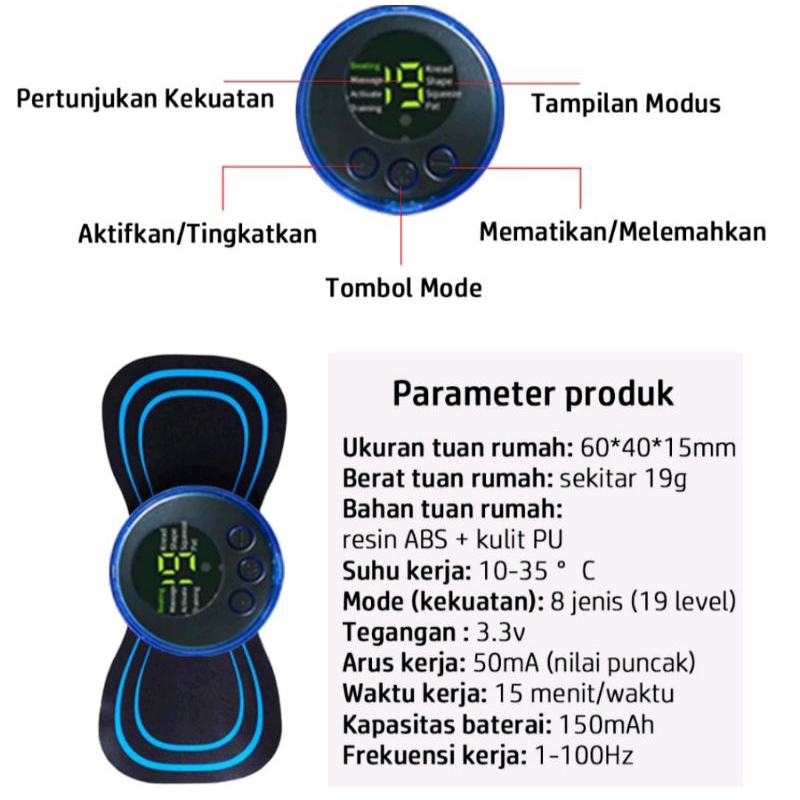 Alat Pijat Getar Punggung Terapi Elektrik EMS Mini Mode Alat Pijat Leher Pinggang Punggung