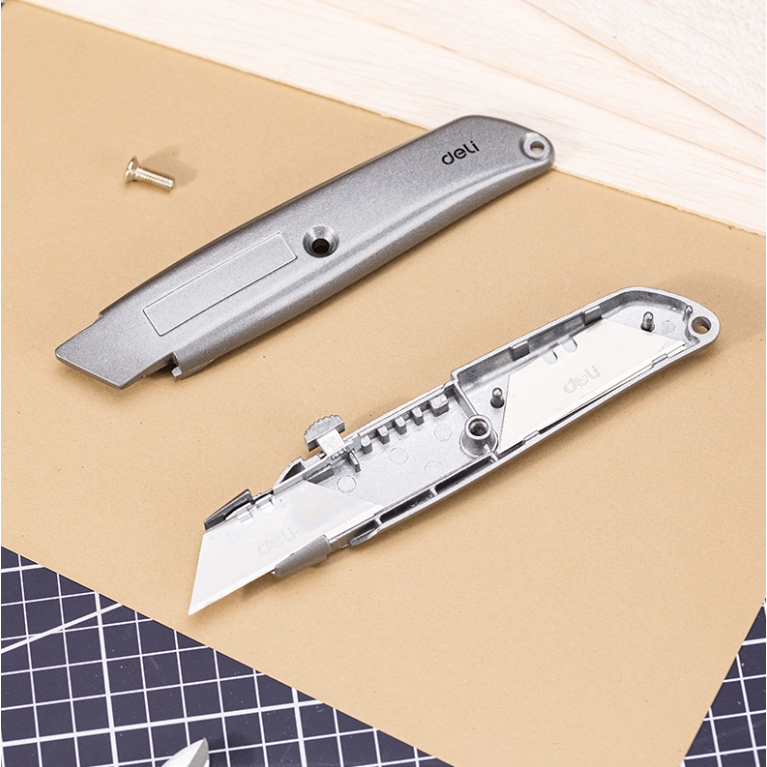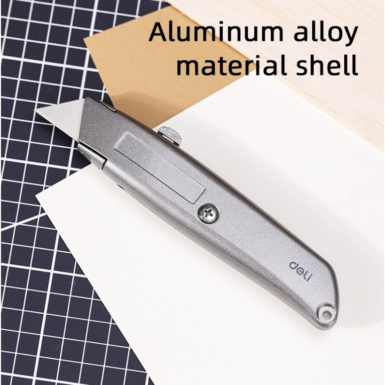 Alat Potong GRC/GIPSUN/WOODPANEL | Deli Utility Knife / Cutter Aluminium SK5 Auto-lock Perkakas EDL4260