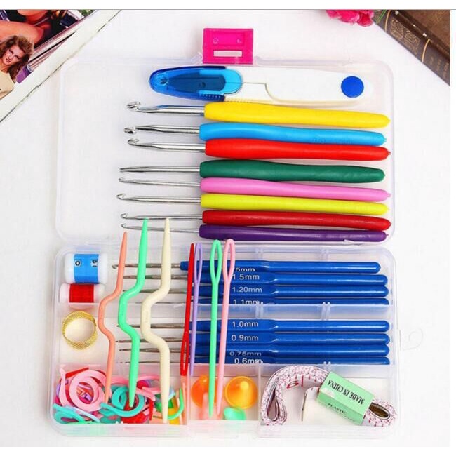 Alat Rajut Set Perlengkapan Rajut Set Jarum Rajut Set Hakpen Set BOX Tas