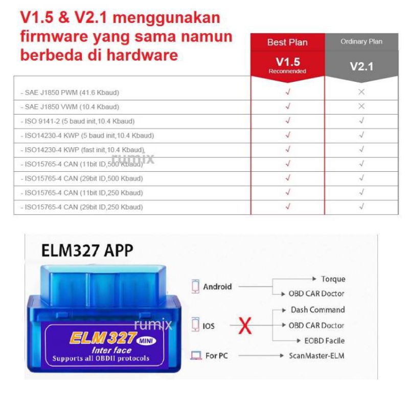 Alat Scan mobil Obd II Auto Tool - Elm 327 Mini OBD2 Bluetooth Wiraless Car scanner V1.5 V2.1 - Komputer Mobil