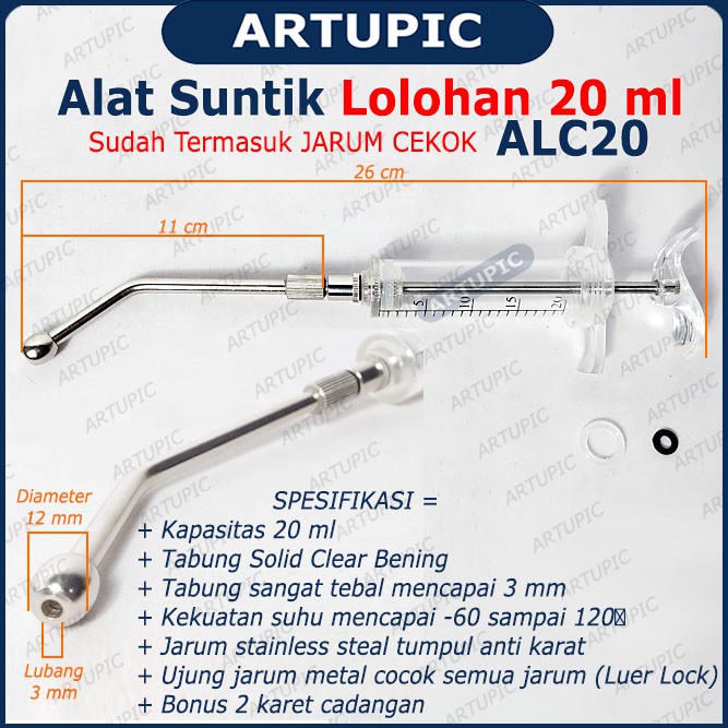 Alat Suntik Hewan Lolohan ALC20 Spet Spuit Syringe Suntikan Jarum Lolohan Stainless Tumpul burung pi