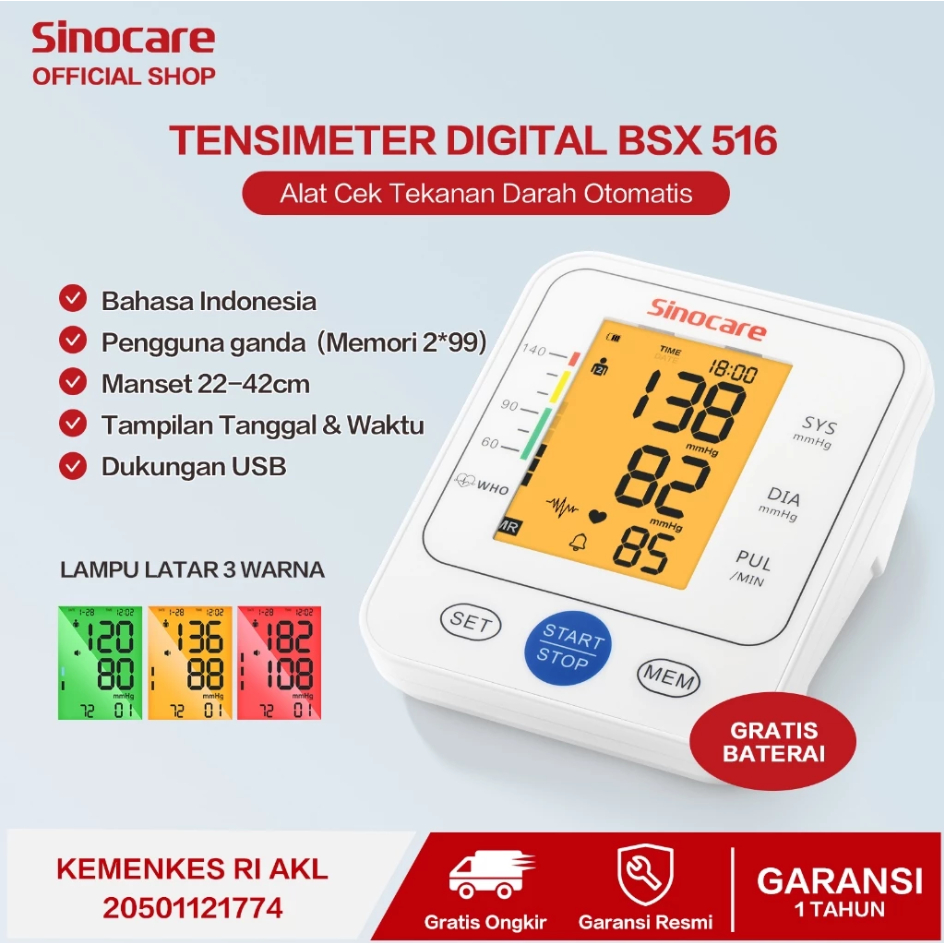 Alat Tensi Darah Digital Otomatis Sinocare BSX-516 (Bahasa) Tensi Digital Alat Cek Tensi Darah