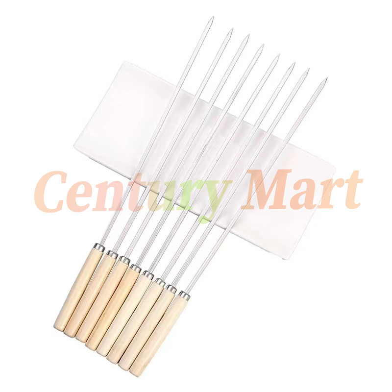 Alat Tusuk Sate BBQ Stainless Steel /Alat Tusuk Sate STAINLESS Pemanggang BBQ Besi skewer 32cm /Tusukan Sate Ayam Kambing Sapi Sosis Stainless Steel BBQ Gagang Kayu