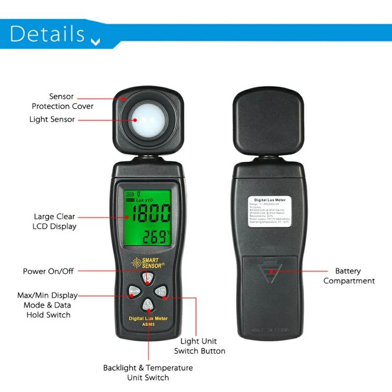 Alat Ukur Cahaya Lihgt Lux Meter Digital Luxmeter AS803 Iluminance Meter SMART SENSOR