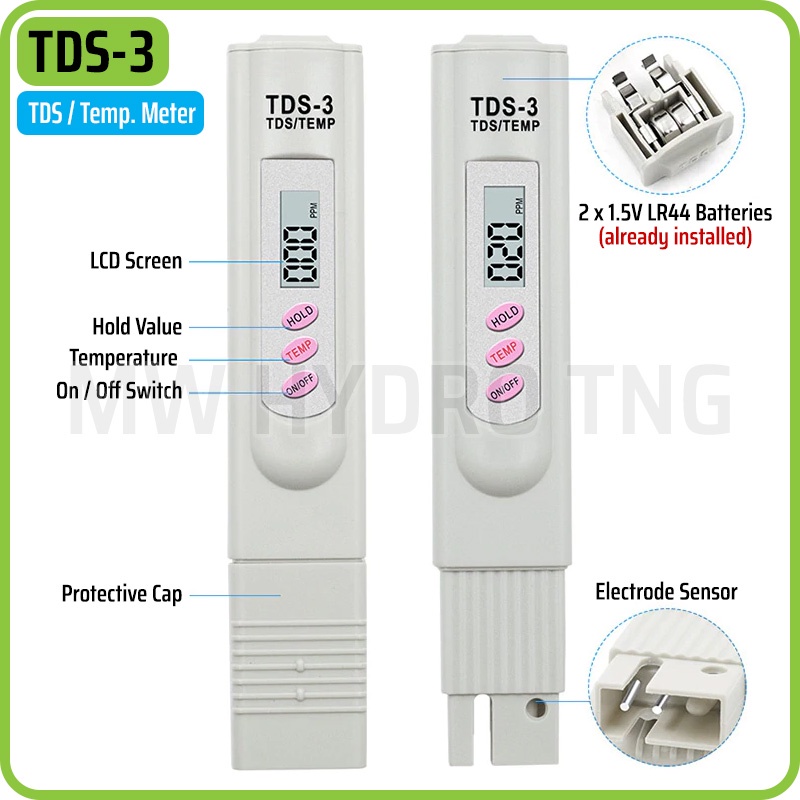 TDS Meter TDS-3, Carton Box | Alat Ukur Air / Nutrisi Hidroponik