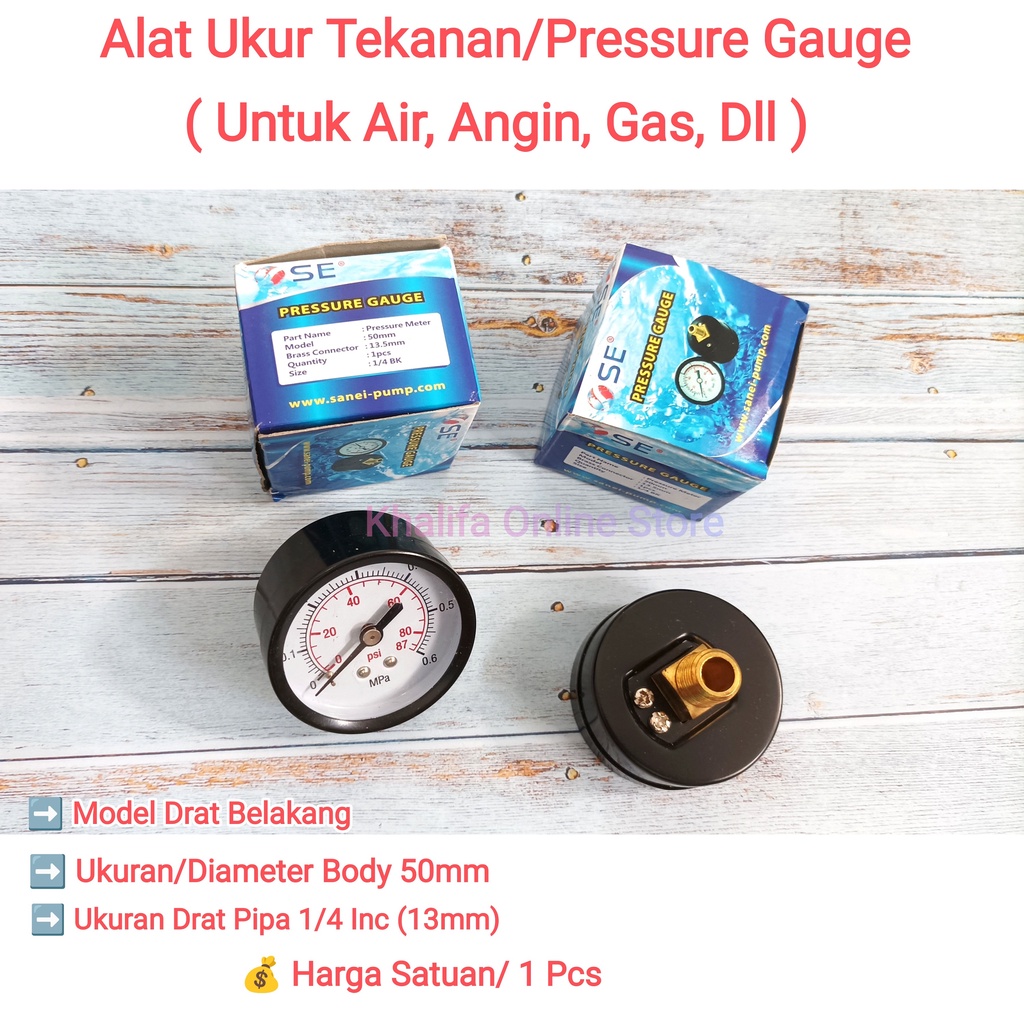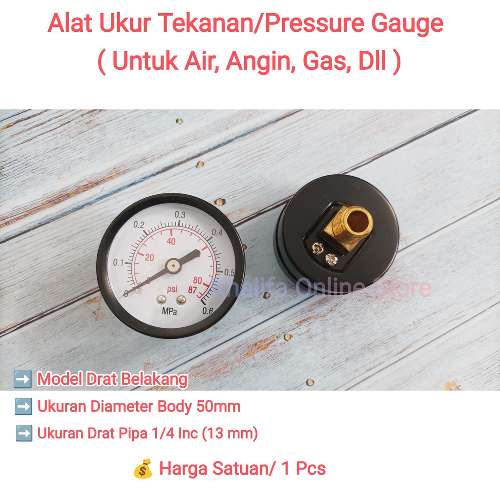 Alat Ukur Pengukur Meteran Tekanan Angin Hidrolik Kompresor Compressor Mesin Pompa Air Udara Pneumatik 0-180 PSI 0-12 Bar