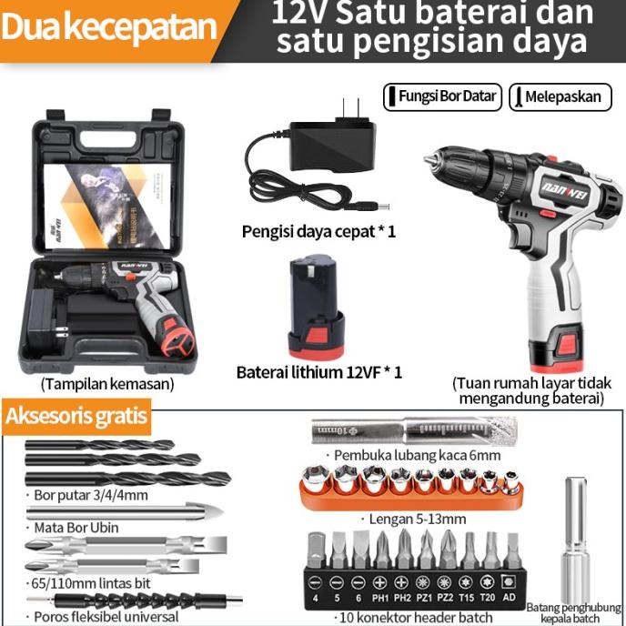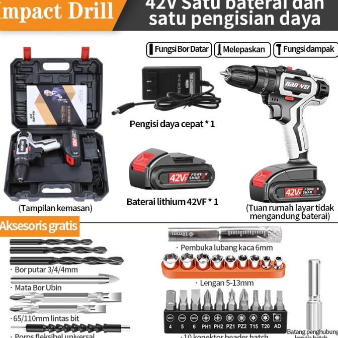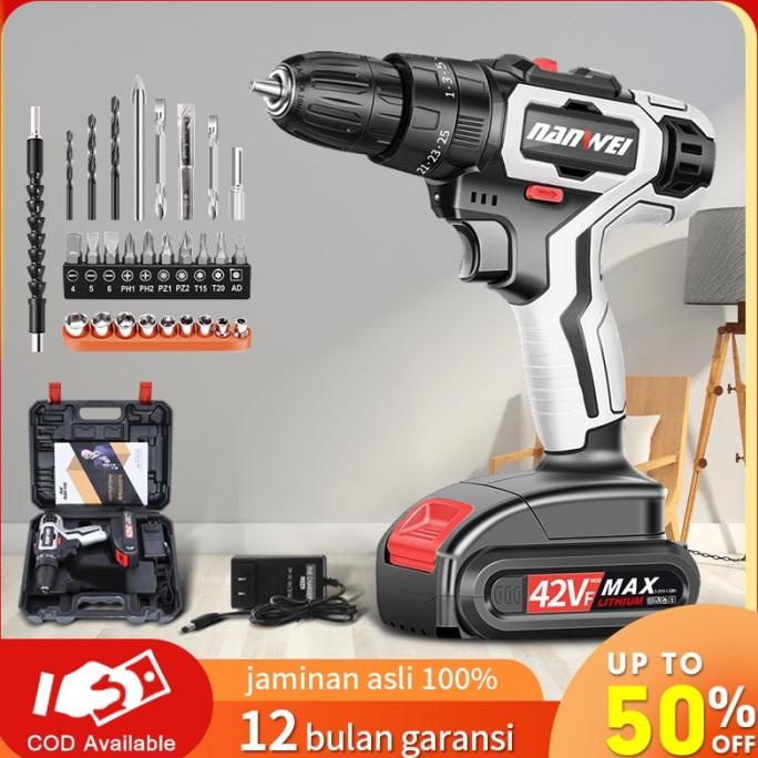 Alat bor listrik dengan isi ulang baterai lithium 12V/42V