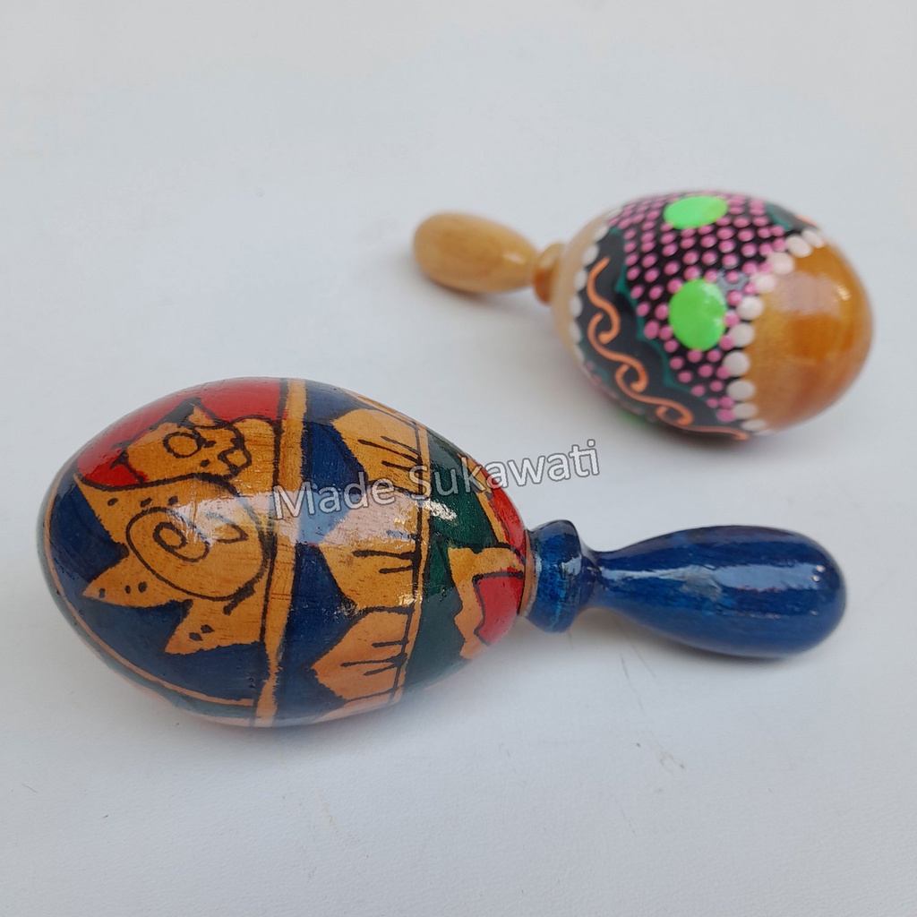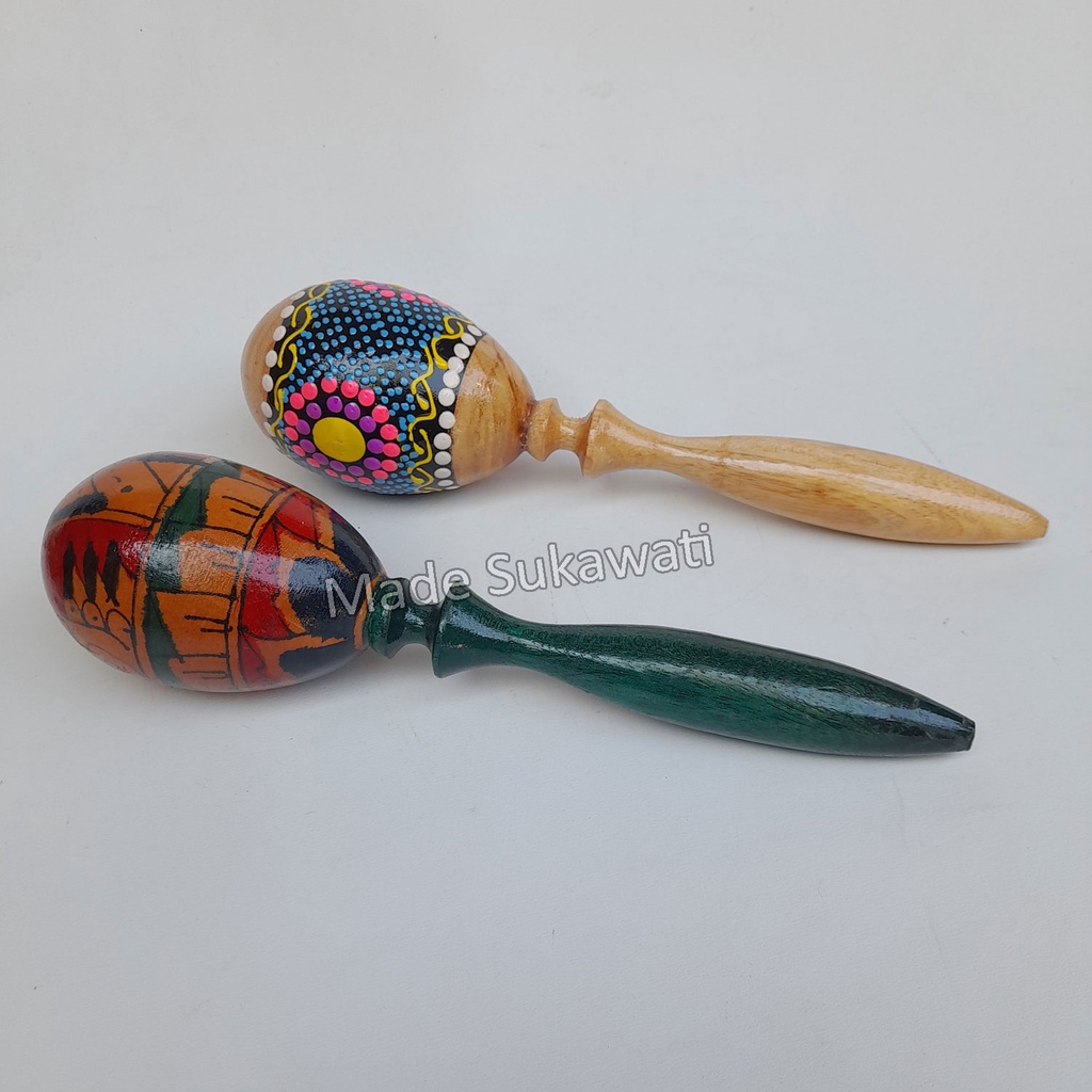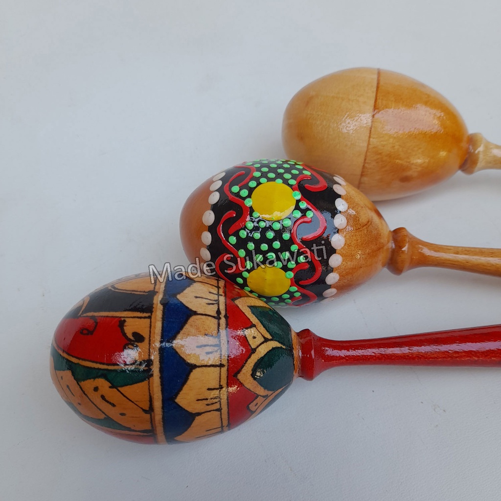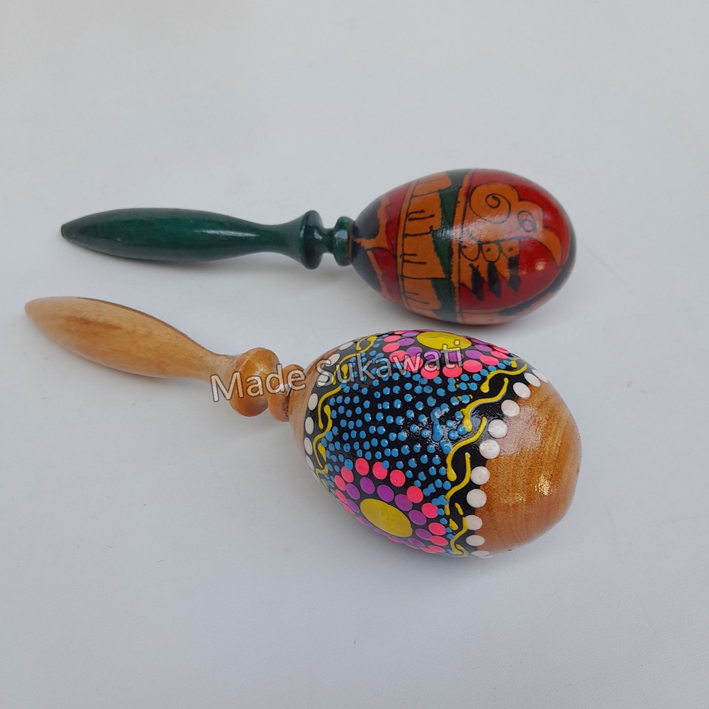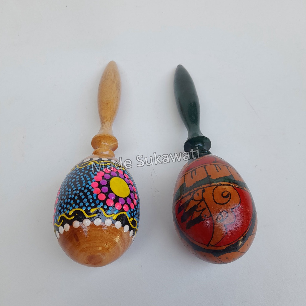 Alat musik marakas shaker telur stik kayu maracas lukis mainan anak