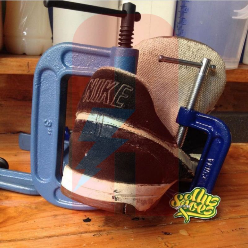 Alat press penjepit sepatu saat proses reglue atau lem sepatu