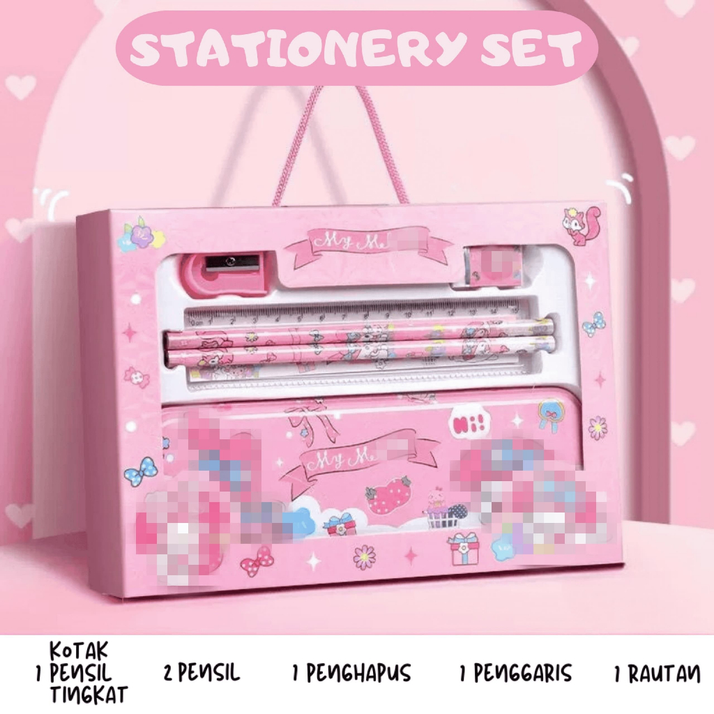 Alat tulis Anak set Stationery Untuk Hadiah Anak Sekolah Motif Kareter Lucu / Alat Tulis Set Karakter kado notes kotak pensil rautan penggaris penghapus