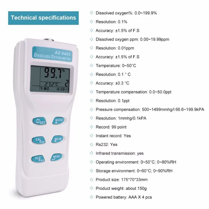 Alat ukur kadar oksigen dalam air atau DO Meter type AZ8403