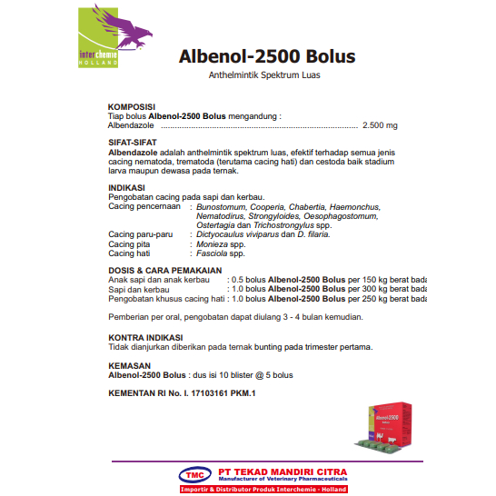 Albenol 2500 Bolus Obat Cacing untuk Ternak 1 Bolus/Tablet