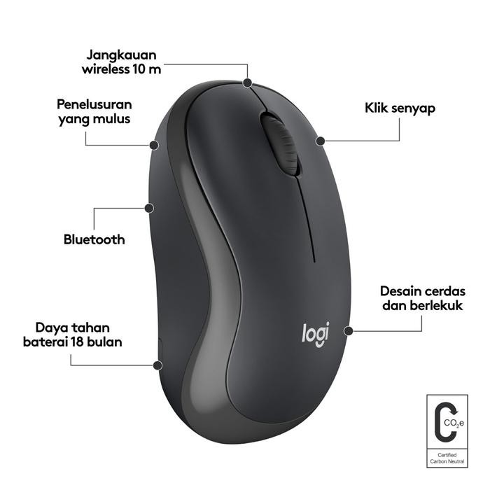 Logitech M241 Mouse Wireless Bluetooth Silent, Ringkas, Portabel, Penelusuran yang Mulus, Daya Tahan Baterai 18 Bulan, untuk Windows, macOS, ChromeOS, Kompatibel dengan PC, Mac, Laptop, Tablet