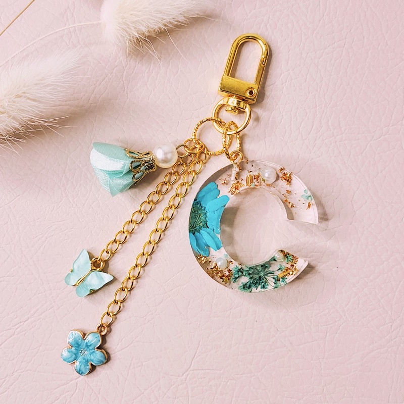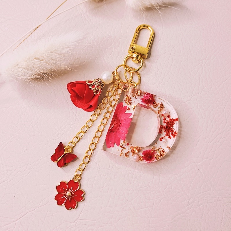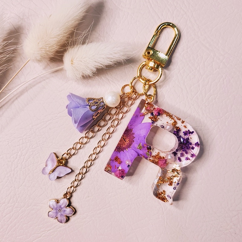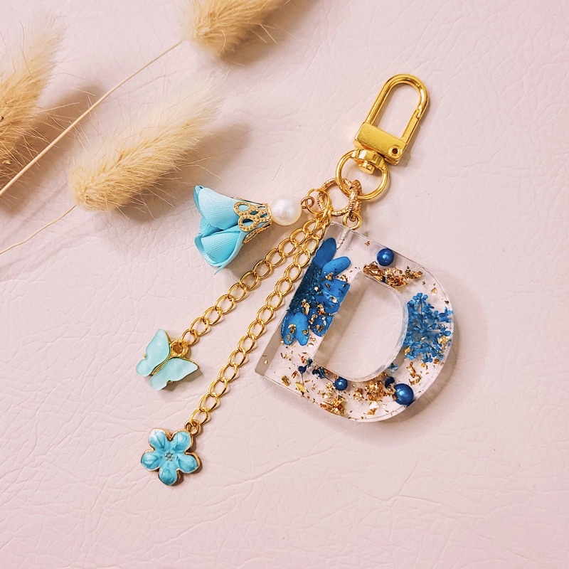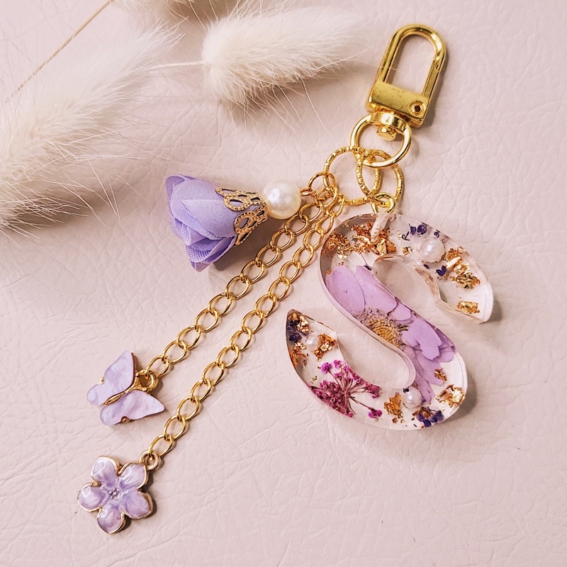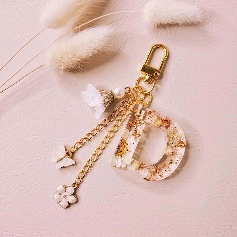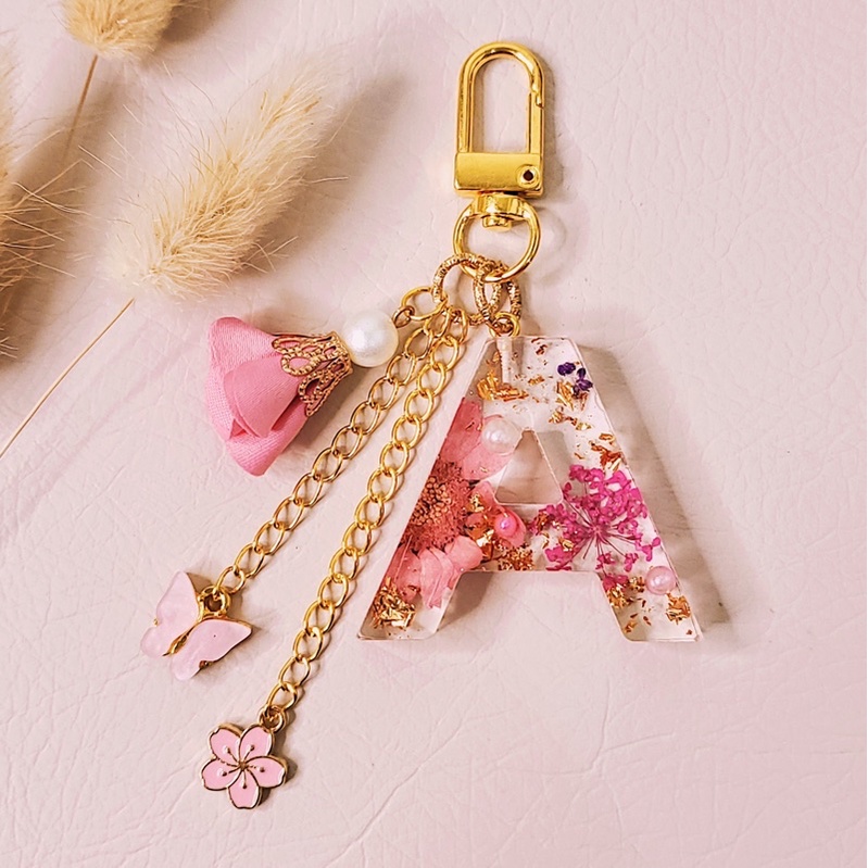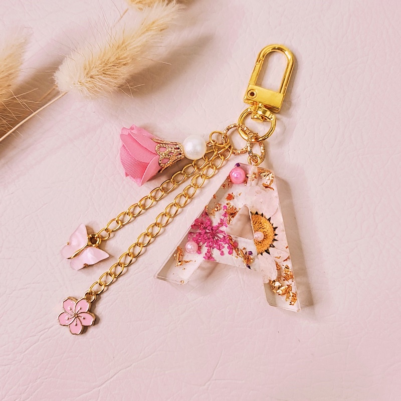 Alexandra Keychain Full Set Custom Initials w/ 3 Charms Inisial Resin Gantungan Kunci Gantungan Tas