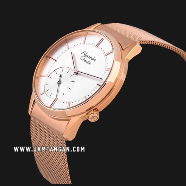 Alexandre Christie AC 8519 LS BRGSL Ladies Silver Dial Rose Gold Stainless Steel Strap
