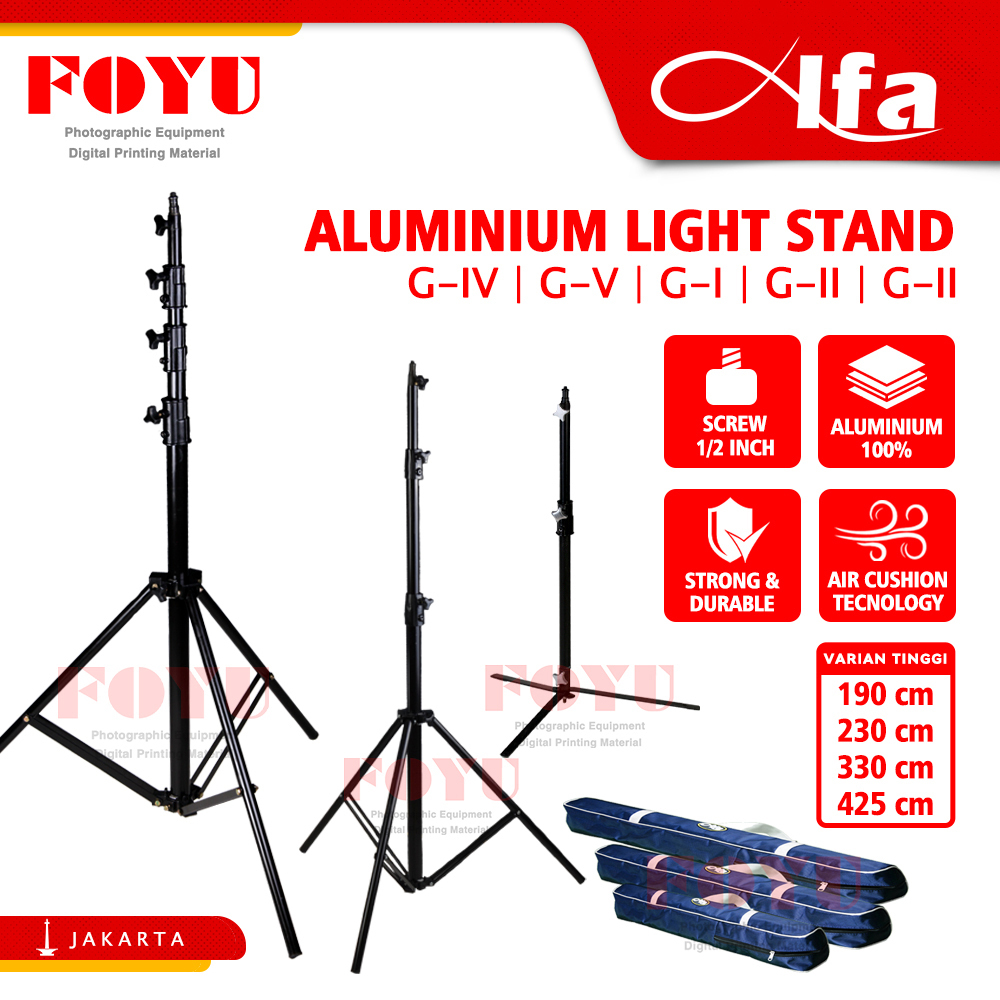 Alfa Aluminium Light Stand Tripod Lampu 80cm 190cm 250cm 350cm 425cm Studio Foto Video G-IV G-V G-I G-II G-III