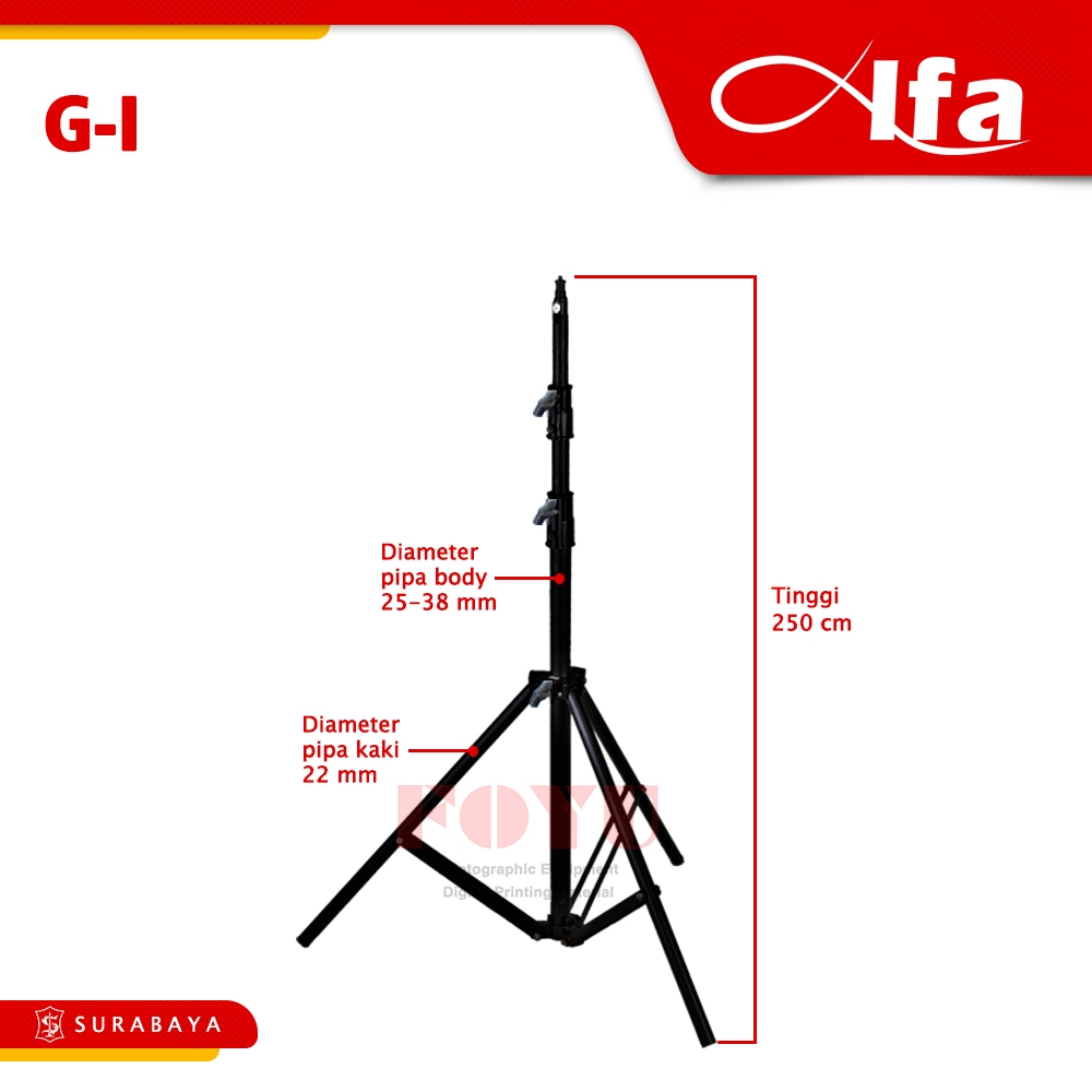 Alfa Aluminium Light Stand Tripod Lampu 80cm 190cm 250cm 350cm 425cm Studio Foto Video G-IV G-V G-I G-II G-III