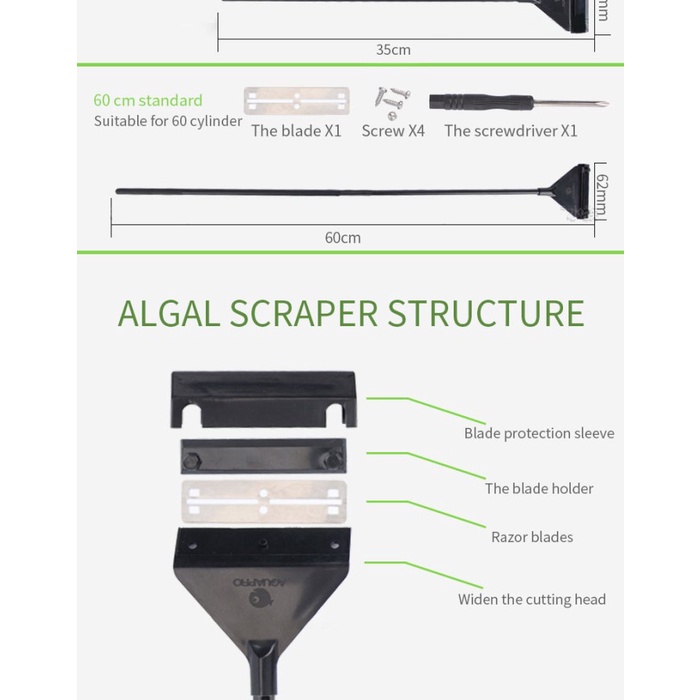 Algae Scraper Scrapper Cleaner Aquarium Aquascape Alumunium Alloy 60cm