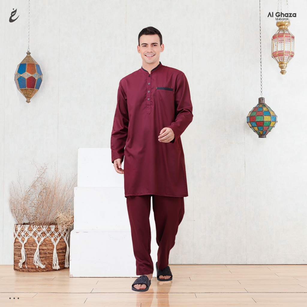 Alghaza Mubarak | Kurta Dewasa Setelan | Kurta Madinah Lengan Blong