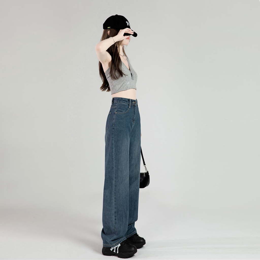 Alice Jeans-Biru Retro Highwaist Kulot Celana Jeans Wanita Loose Kekinian