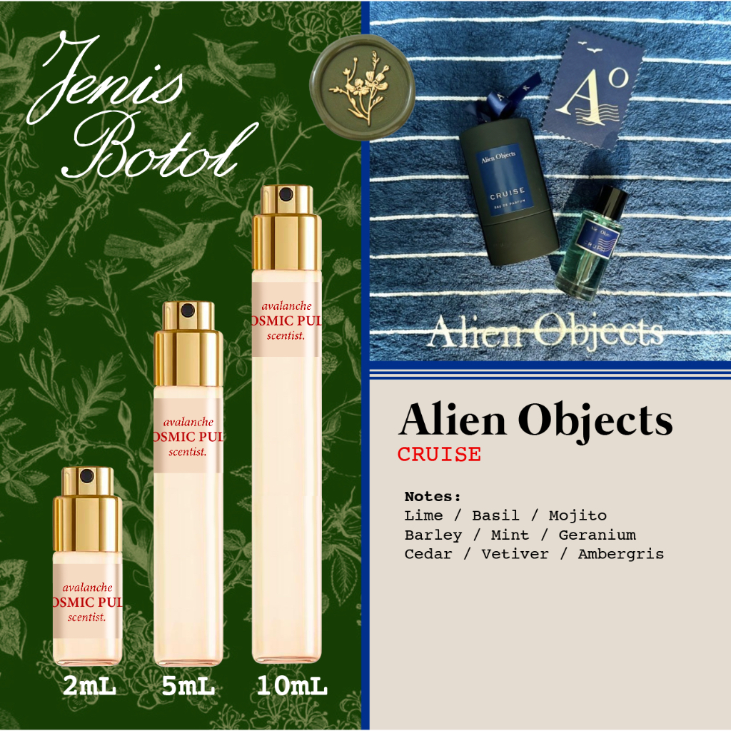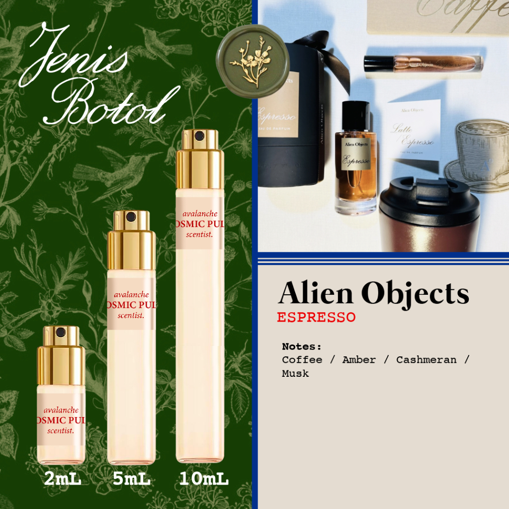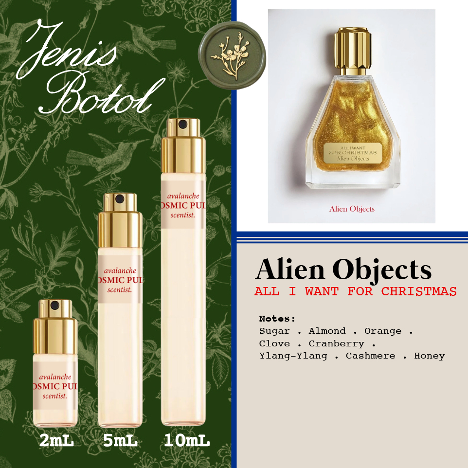Alien Objects - Discovery Set | Brownie I want Christmas Bougainvillea Porto Chianti Bordeaux ANTE UBUD SAHARA Cognac Doraemon Abstract Metal Shangri-La Espresso Latte Pandan XOXO FUFU Hugs Cruise Aurora | Travel Size | Decant