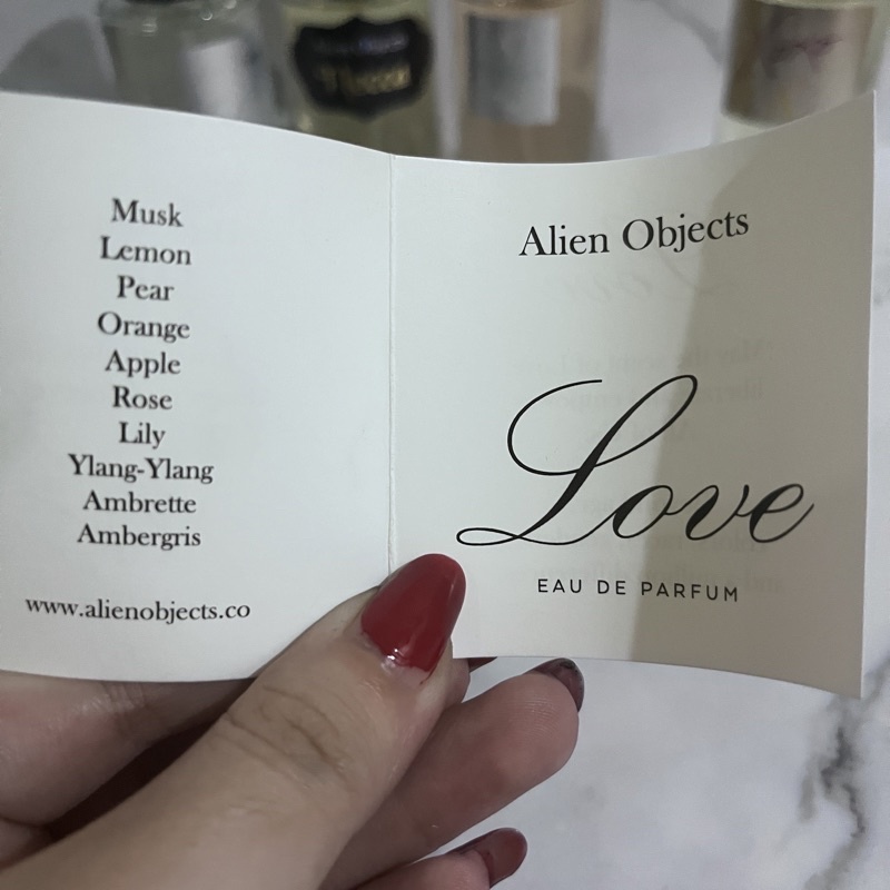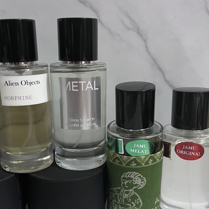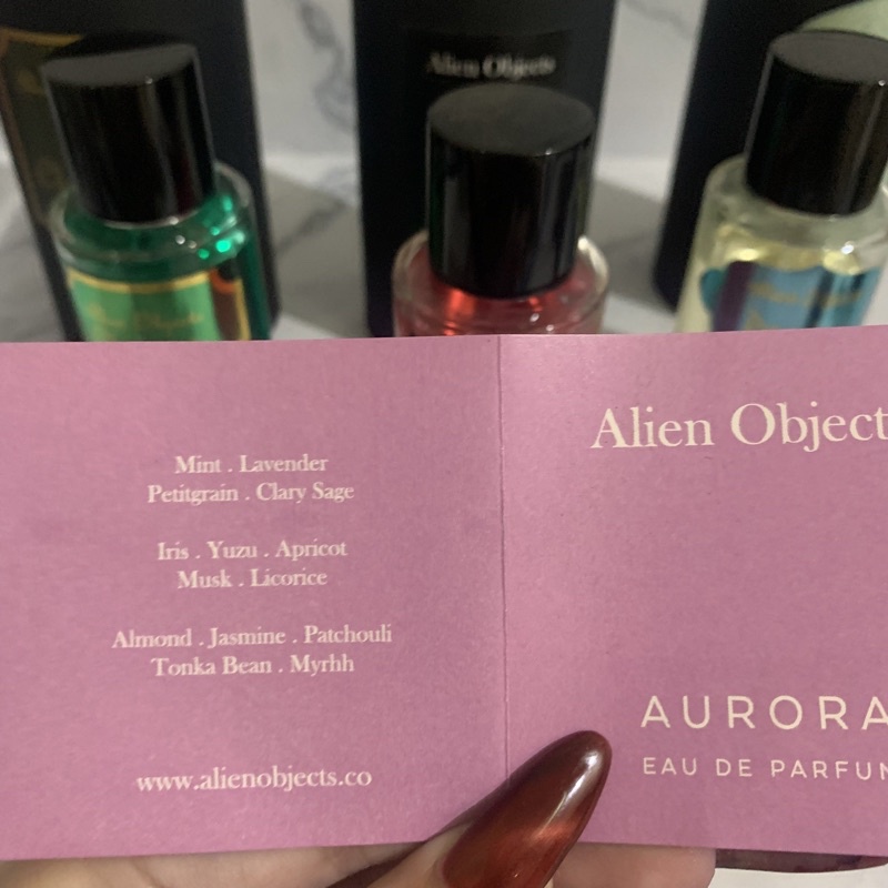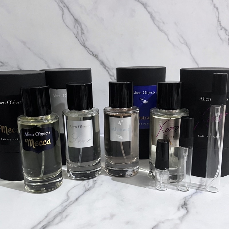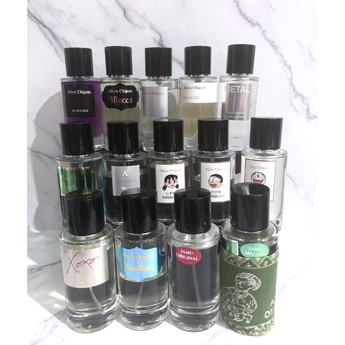 Alien Objects Hughs/ fufu / Cruise / Pandan / Morphine / Xoxo / Aurora / Sonder Lab / Rudolph / Chestnuts / Silent Night / Metal / Shizuka / Doraemon / Nobita / Jamu Melati / Indonesia / Love / Mecca / Abstract EDP Decant Parfum