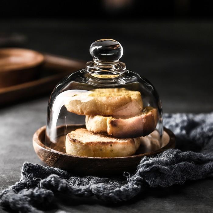 Alish | Tempat Kue Mini Cake Stand With Glass Dome Wooden Mini Dessert Tray